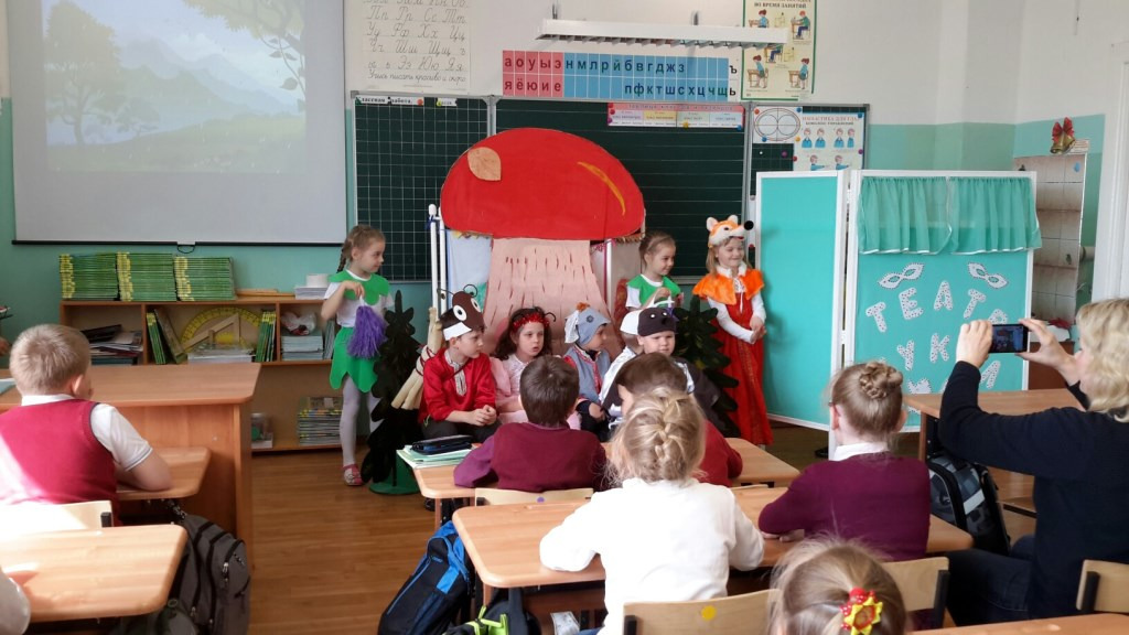 21 мая 2019 года в рамках акции «Международный день соседей» воспитанники группы «Снеговичок» вместе со своими педагогами учителем-логопедом Бедановой Ю.А., воспитателями Зотовой Л.Г. и Лучинской Н.А. вновь показали спектакль по сказке Владимира Сутеева «Под грибом». В этот раз их принимали у себя в гостях ребята 3А класса МБОУ «СОШ № 29» (классный руководитель – Кирова Надежда Михайловна). Хотя это был уже не первый показ спектакля, дошколята немного волновались. Зрители, недавние выпускники нашего детского сада, были совсем рядом и очень внимательно наблюдали за игрой маленьких артистов.
