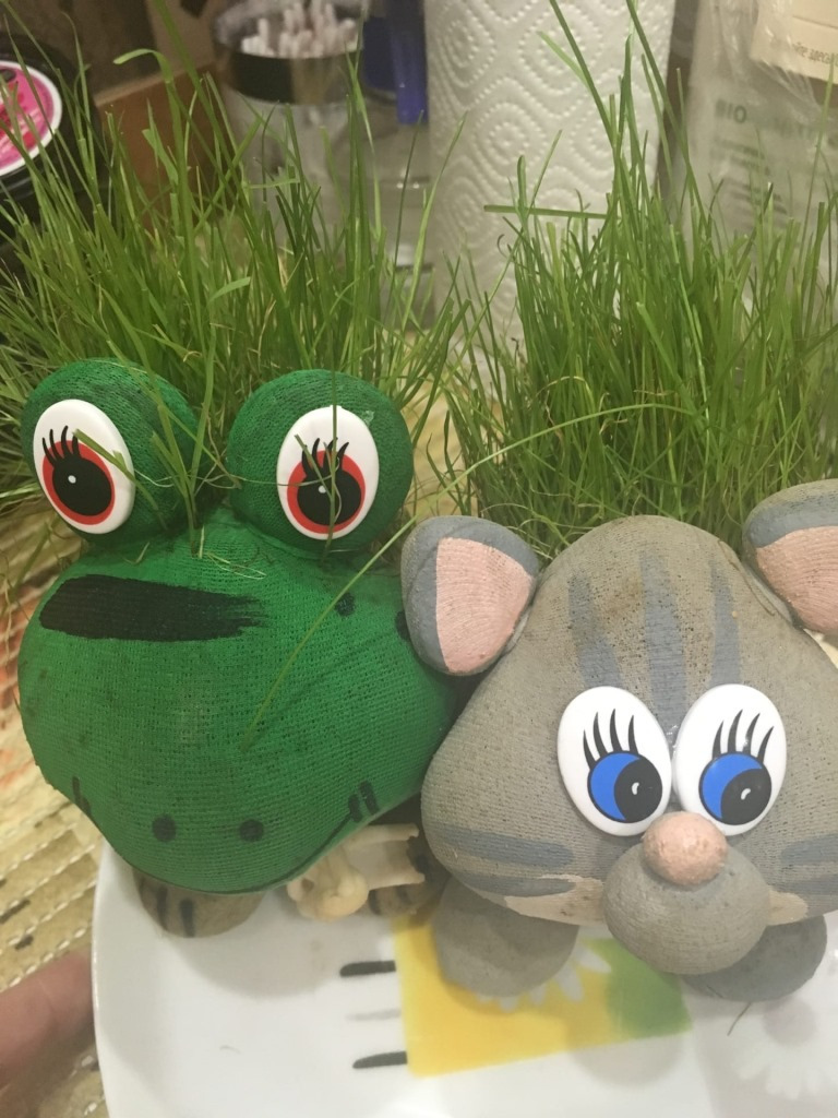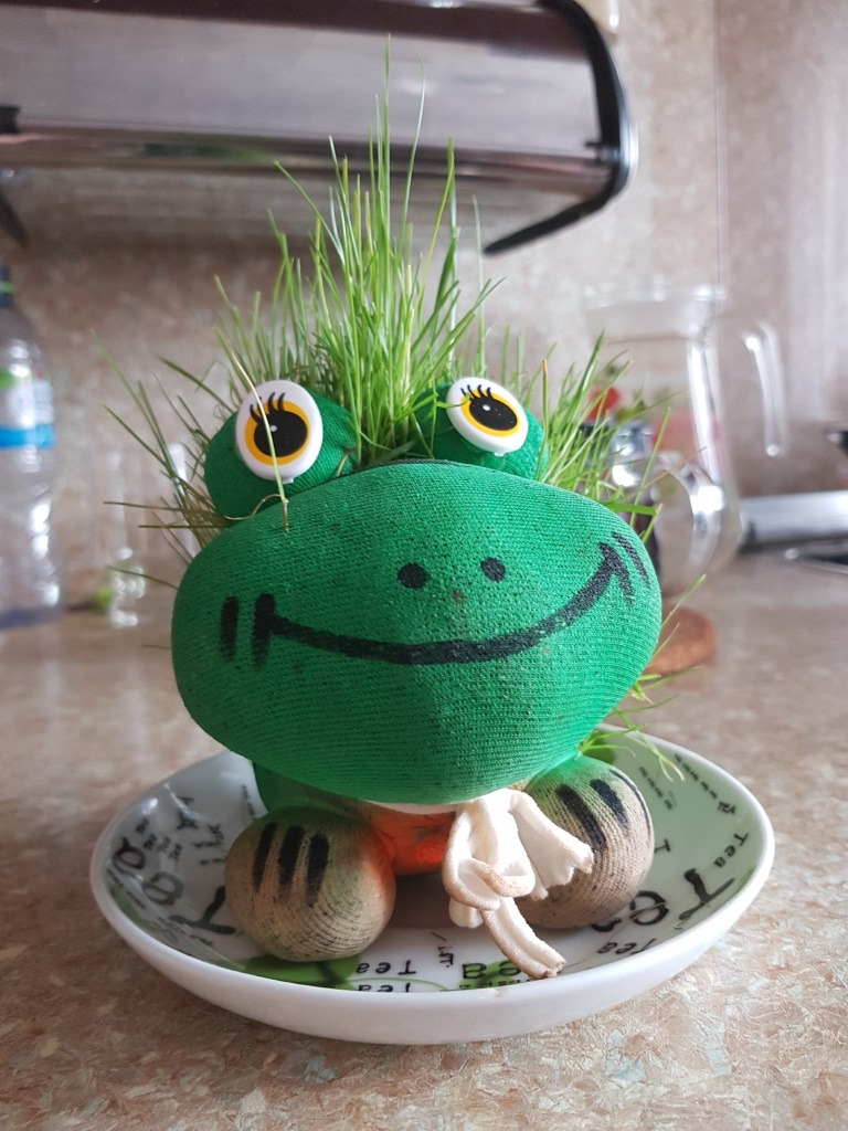 Очень интересным и познавательным заданием было изготовление экологической «живой» игрушки «Травянчика». Колчина Алиса и Лебедев Тимофей дома вели дневник наблюдений за ростом «волос». В ходе экспериментов они узнали, что растениям для роста необходимы вода, солнечный свет, воздух и тепло.