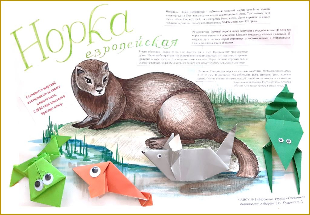 Этап «Красная Книга Архангельской области» призван помочь сформировать у детей ответственное и доброе отношение к родной природе, расширить знания детей о редких представителях флоры и фауны нашей области. Углублённо на этом этапе наши дети изучили информацию о европейской норке. Теперь они знают, где обитает норка, чем питается, почему ее так называют, а главное - почему она занесена в Красную Книгу! Совместными усилиями детей, родителей и педагогов была создана страница Красной Книги.