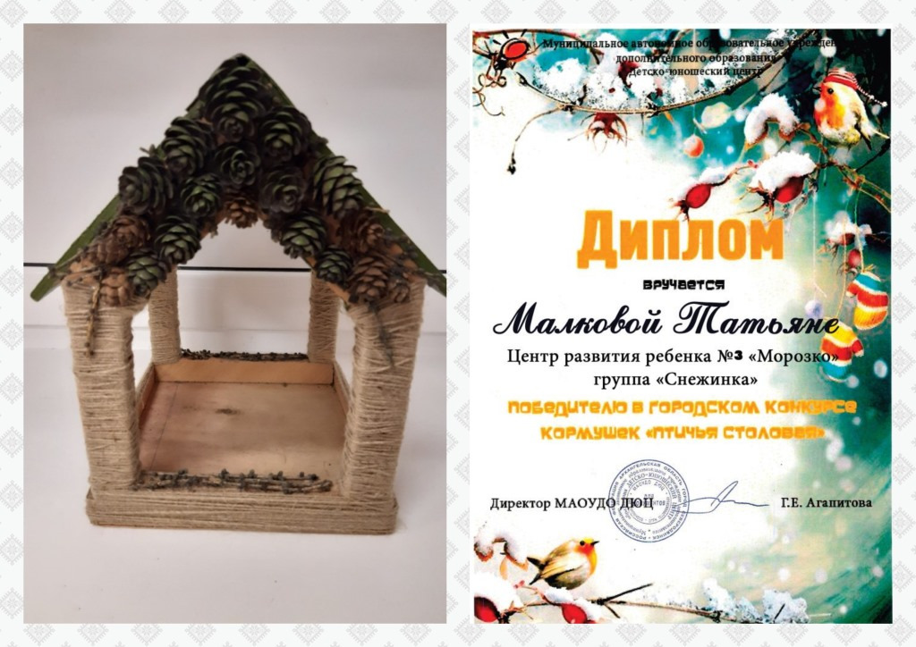 Следующими этапами программы были праздник встречи зимующих птиц «Синичкин календарь», который проходил в ДЮЦ, и семейная творческая мастерская «Птичья столовая». Полюбившиеся герои Синица и Сорока рассказали, как можно помочь птицам в зимний период и чем лучше их подкармливать. 10 семей нашей группы приняли участие в конкурсе. В итоге две кормушки признаны лучшими!