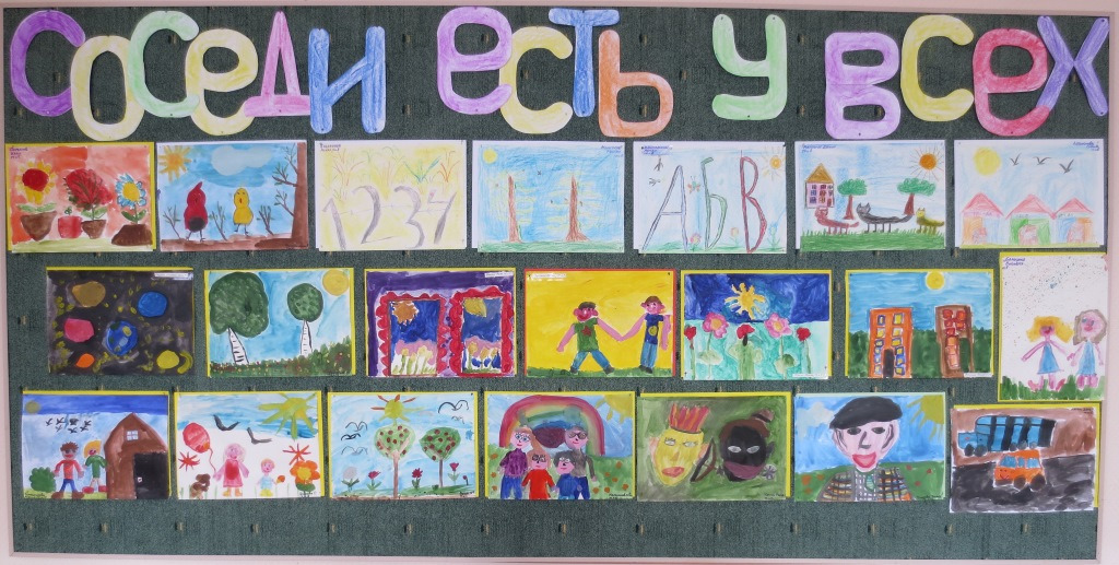 У кого есть соседи? Какими они бывают? Как их нарисовать? – над такими вопросами на занятиях по рисованию думали воспитанники старшего дошкольного возраста нашего детского сада. По мнению детей, соседи – это не только люди, живущие рядом, но и всё, что их окружает: буквы, цифры, цветы на подоконнике, картины на стене. Свои взгляды на это дети отразили в рисунках, которые можно посмотреть на выставке «Соседи есть у всех – у людей, у животных, у стран, у планет».