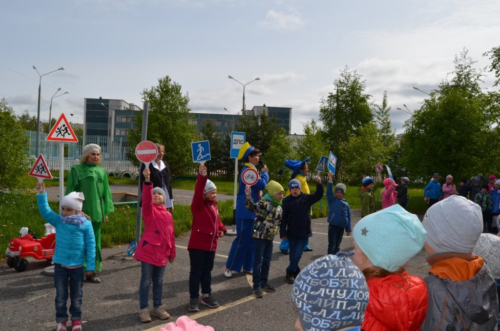 Дети из групп «Медвежонок» и «Белочка» побывали в этот день на празднике по правилам дорожного движения, организованным реабилитационным центром «Ручеек». Жители Солнечного города закрепили с воспитанниками «Морозко» сигналы светофора, назначение некоторых дорожных знаков, правила поведения на проезжей части.