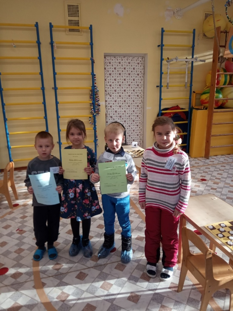 Заслуженная победа досталась Лашковой Елисавете из группы «Снегирек» и Паршину Владимиру из группы "Березка". Маленькие спортсмены удивили серьезным отношением к интеллектуальной игре, быстротой ума и умением просчитывать ходы. Также хорошие результаты показали: Синицына Евгения, Кирдяшкин Владимир, Антипин Иван, Кривогузов Сергей (группа "Снегирек") и Ксензов Глеб, Антонов Лев, Шкрябина Мария (группа «Березка»).