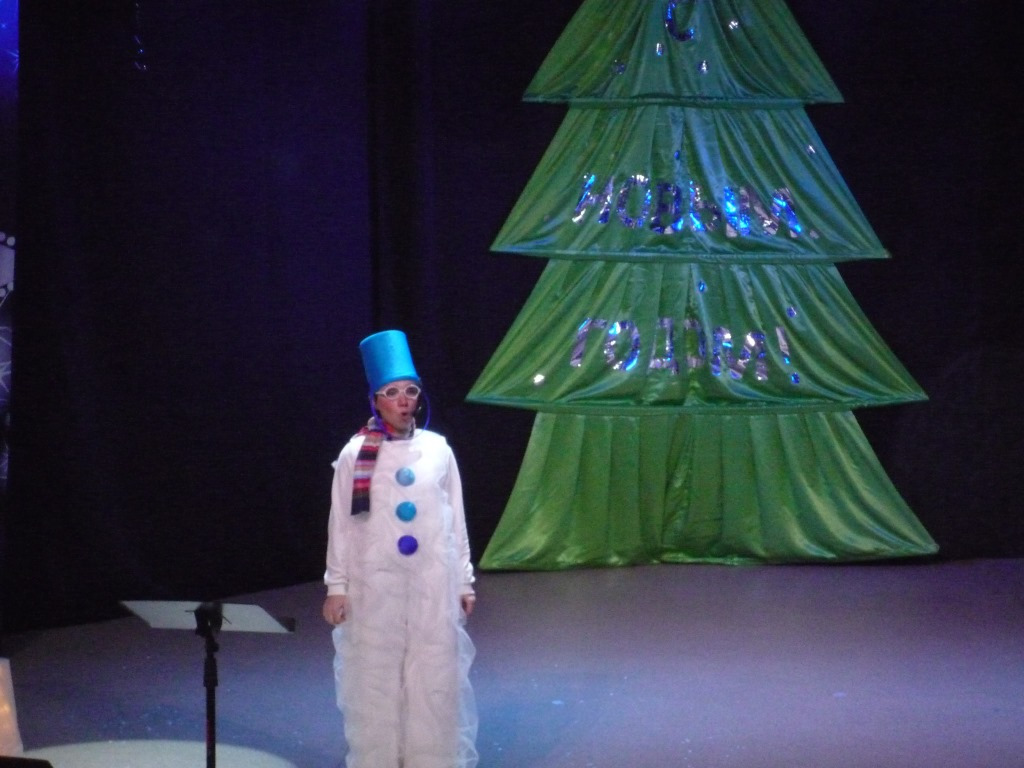 Озорной Снеговик (в исполнении бессменной ведущей и автора проекта Татьяны Морозовой) изобретал и испытывал волшебные средства, которые помогли всем присутствующим детишкам стать добрыми, умными и любознательными.