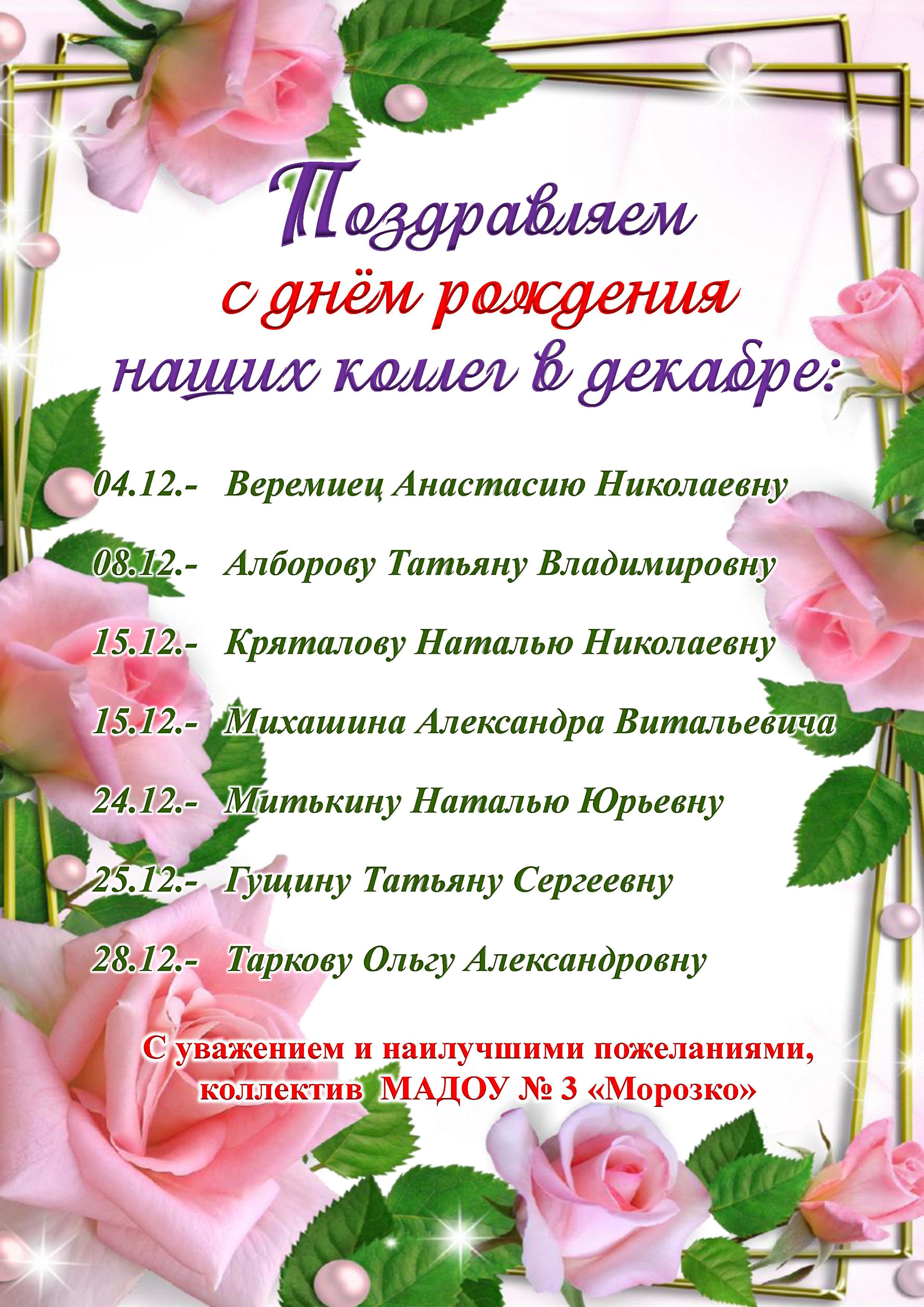 ПОЗДРАВЛЯЕМ С ДНЁМ РОЖДЕНИЯ НАШИХ КОЛЛЕГ,