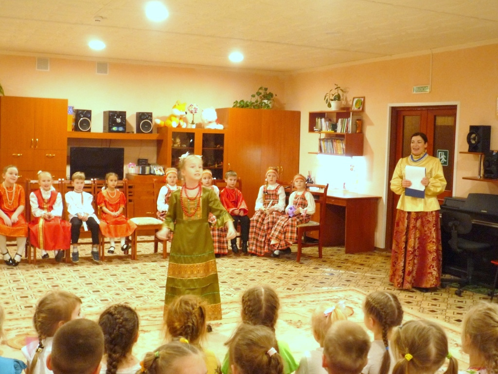 Ведущая вечера, преподаватель народного вокала Ульмасова Ирина Константиновна, рассказала собравшимся о традициях проведения календарного праздника Святки. Вниманию зрителей были представлены 2 детских творческих коллектива ДМШ - «Северная отрада» и «Играньице». Весело и задорно маленькие артисты исполняли песни, частушки, заклички, калядки, народные игры. Концерт помогли провести аккомпаниатор Усачева Зоя Юрьевна и преподаватель Сняткова Анна Николаевна.