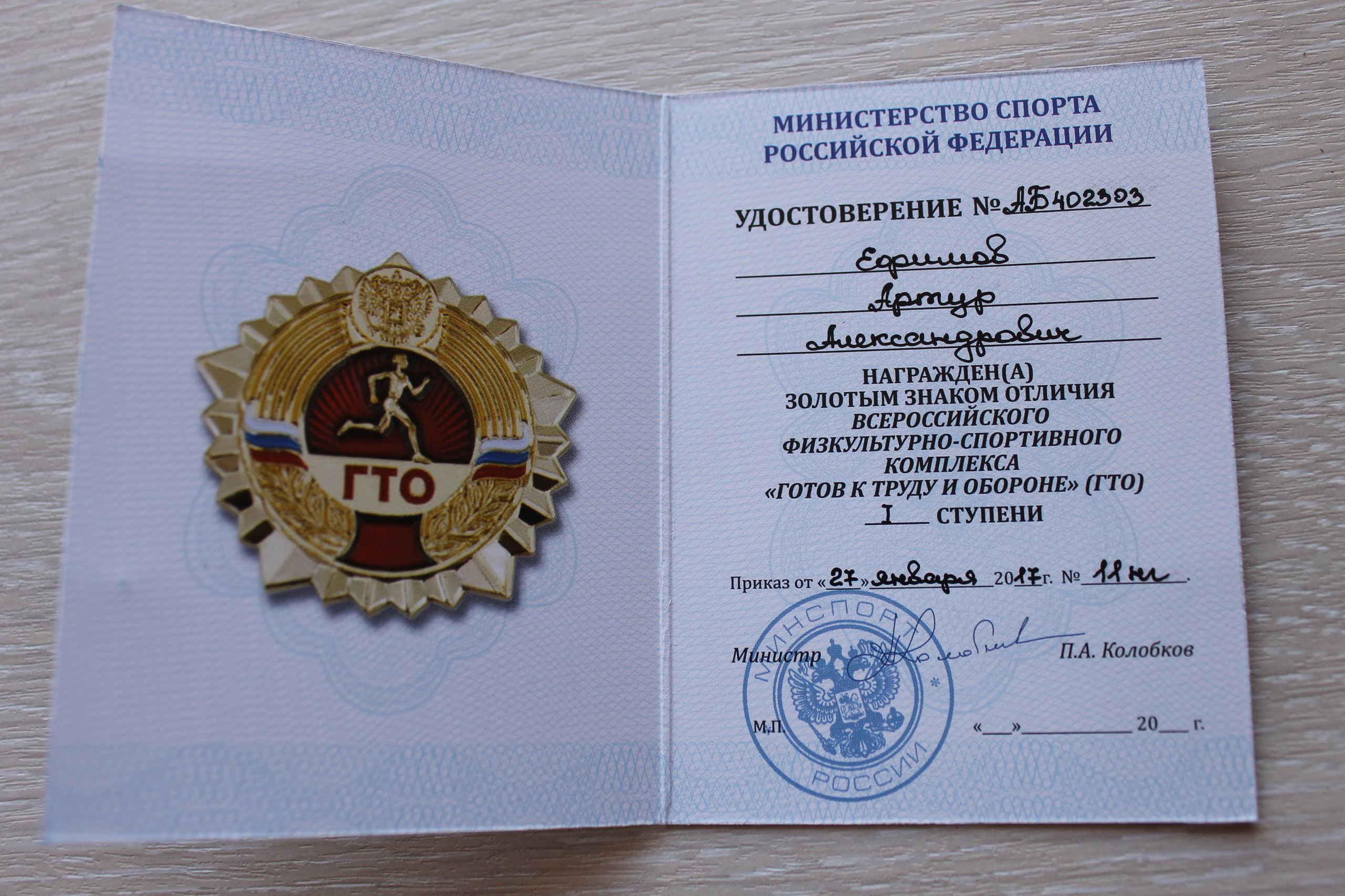 07 апреля 2017 года награждён золотым знаком отличия ВФСК ГТО –
