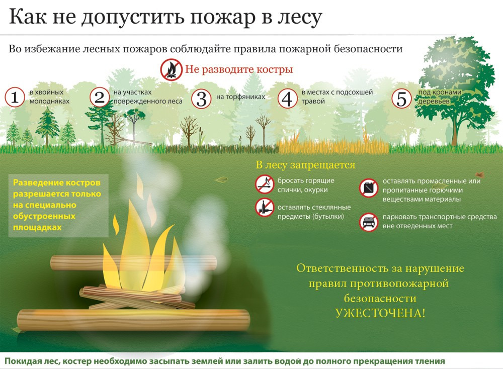 Согласно приказу МЧС № 26 действует полный запрет на открытый огонь в следующих случаях: