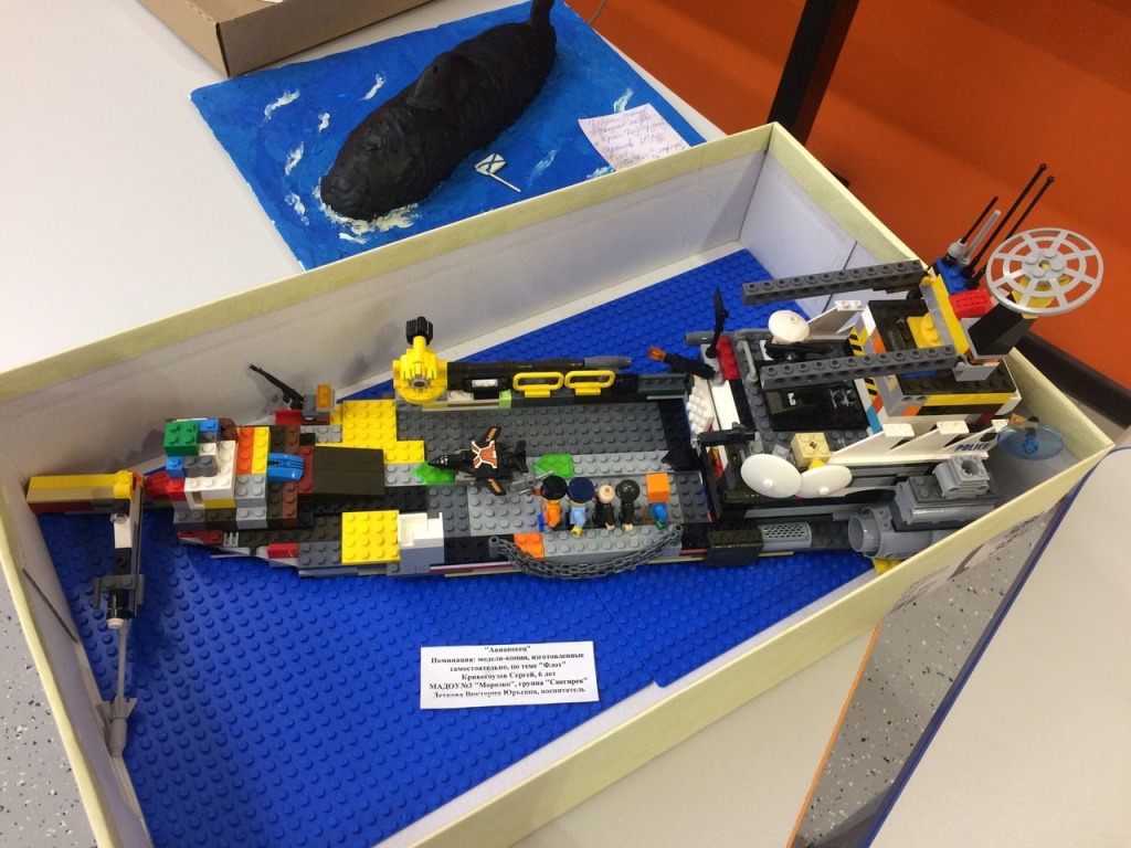 Также отличился воспитанник группы «Снегирек» Кривогузов Сергей (воспитатель - Деткова Виктория Юрьевна), который представил на выставку экспонат под названием «Ремонтно-строительный док» и награжден Дипломом II степени в номинации «Модели-копии, изготовленные из наборов» по теме «Флот».