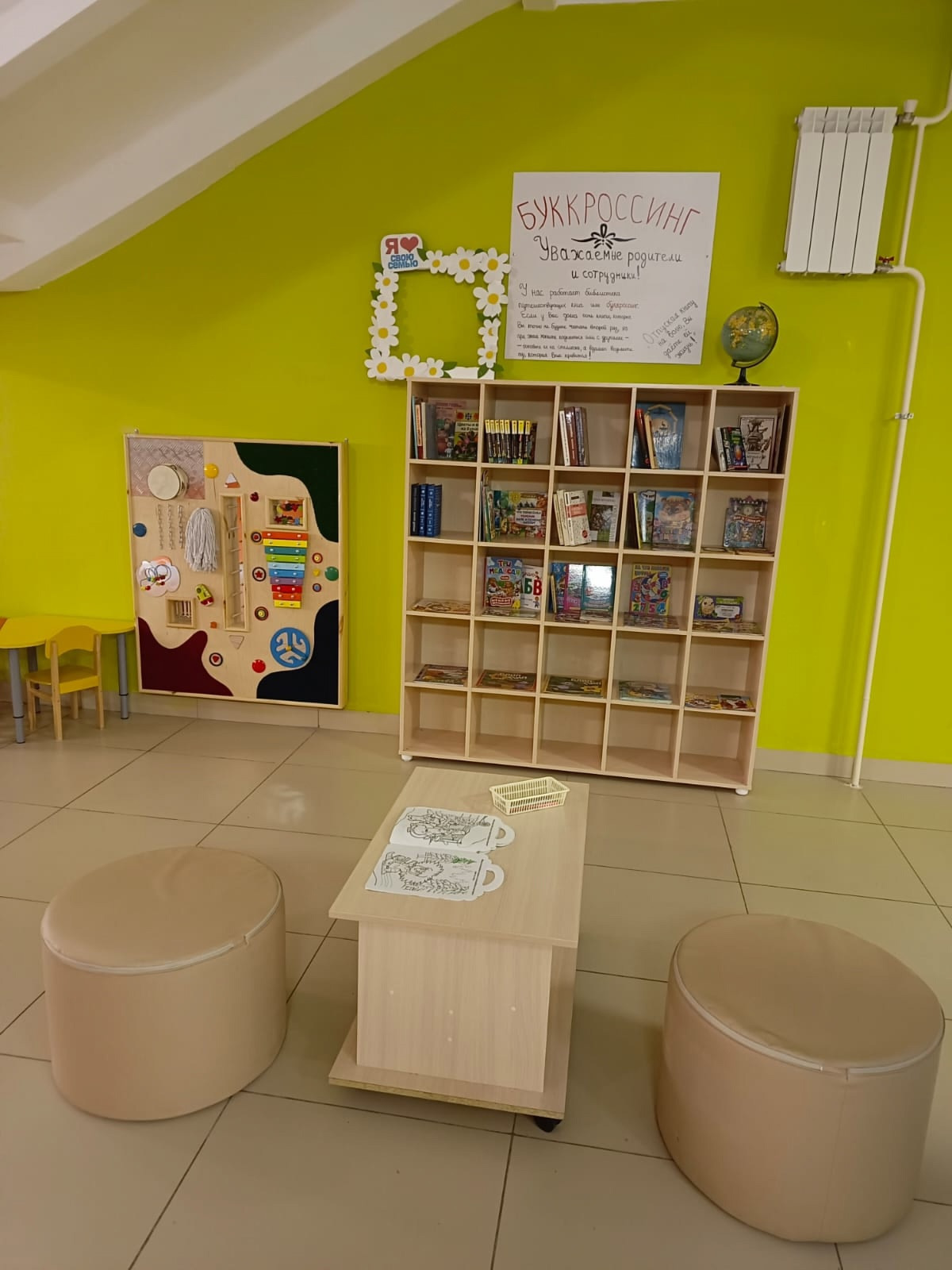 Комфортные зоны отдыха. В фойе имеется комфортная зона отдыха (ожидания), которая оборудована мягкими стульями, пуфами, столами. Имеется телевизор. Так же в доступе селлаж для буккроссинга (обмен книгами). |