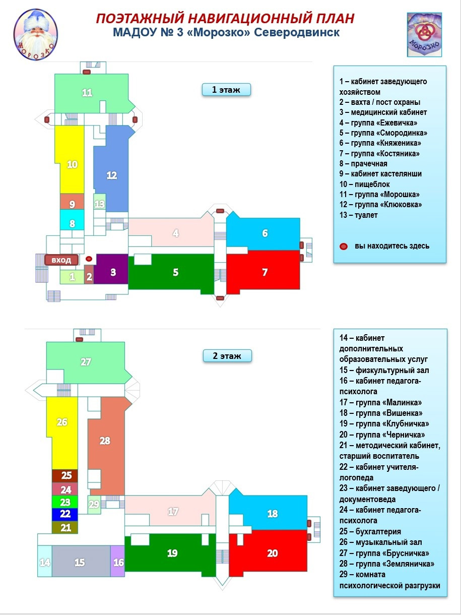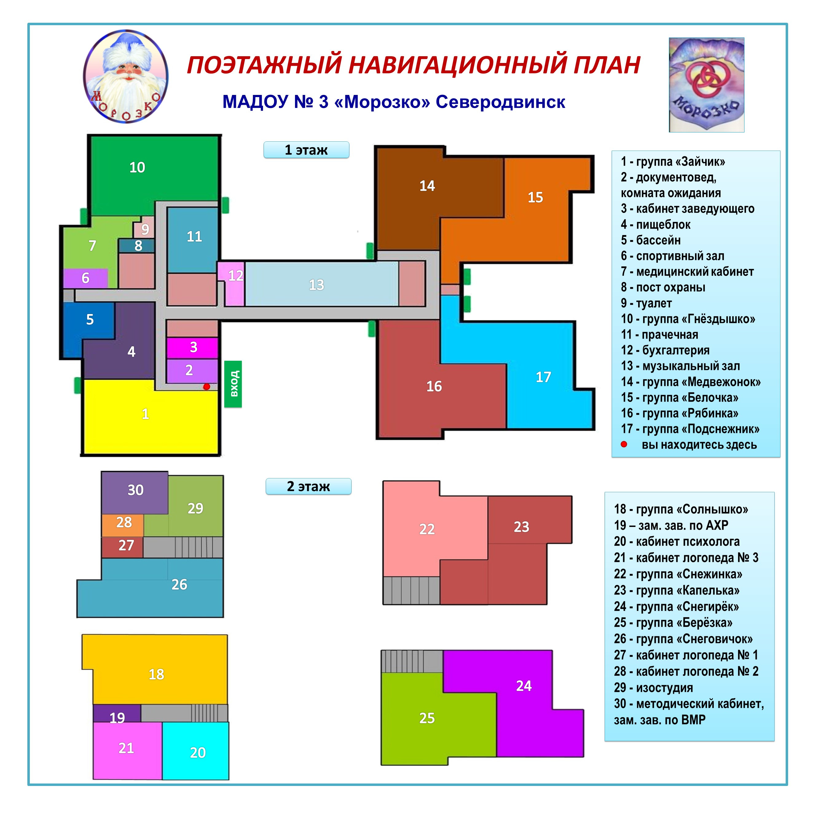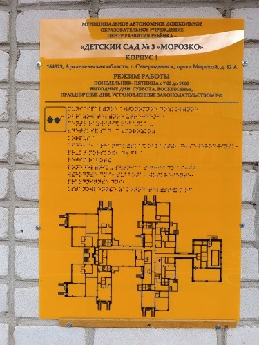 Навигация. Имеется поэтажный навигационный план на 1 этаже.На дверях залов и кабинетов таблички. Имеются указатели. Отмечена простота знаков и символов. |