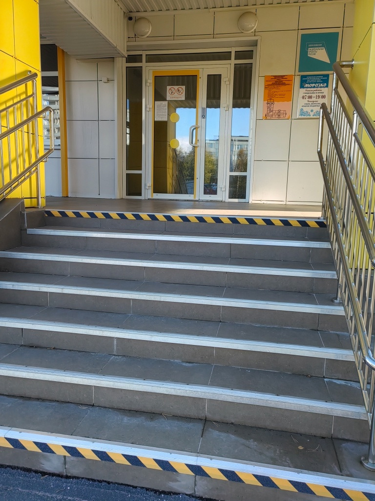 Доступность входной группы. Центральный вход оборудован подъемной платформой. Отмечено наличие расширенных дверных проемов. |